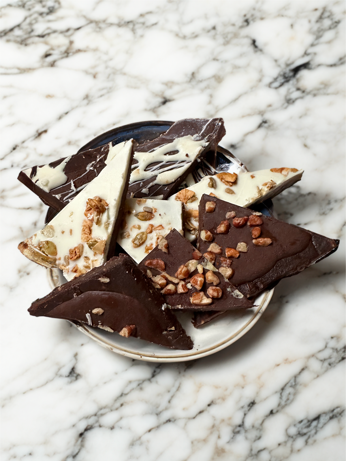 - Remove the bark from the freezer and let it rest for 10 minutes before chopping it into single-serving triangle shapes.