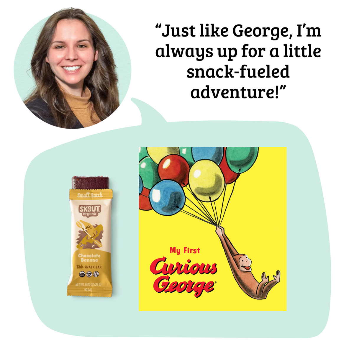 Lydia, our Customer Service Representative, adored Curious George as a child. The lovable little monkey was always getting into mischief, but his curiosity made him impossible not to love. And since George was always up for a snack, Lydia thinks he would have reached for our Chocolate Banana Kids Snack Bar—a tasty combo of chocolatey goodness and real bananas.