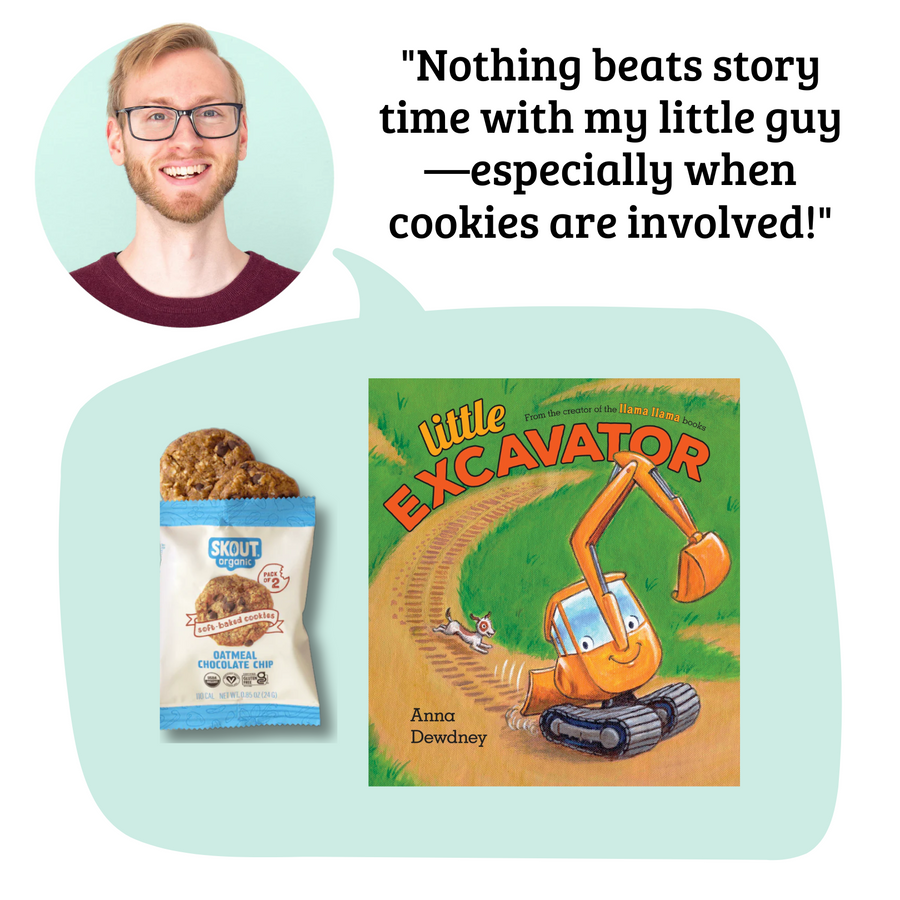 Josh, our Senior Design Director, has a little one who’s fascinated by big machines. Little Excavator is the perfect story about a small but mighty digger who finds his place on a construction site. And what better snack to pair with this hardworking tale than our Oatmeal Chocolate Chip Cookies—a classic with just the right mix of chewy and crunchy!