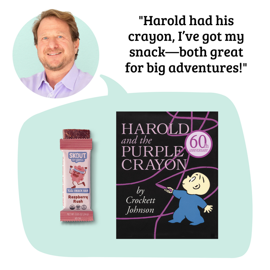 Stu, our Chief Marketing Officer, loved reading Harold and the Purple Crayon to his kids. This imaginative story follows Harold as he creates his own world with a single purple crayon—proof that creativity has no limits! Just like Harold’s adventurous spirit, our Raspberry Rush Kids Snack Bar is bold, fun, and full of fruity flavor.