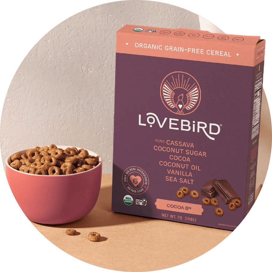 A great way to start your day! Lovebird Cocoa Cereal was started with an important mission in mind, and is made with simple, organic ingredients you can read on the front of the box. This cereal is as good for your taste buds as it is for your body. Whether you enjoy it with your milk of choice, sprinkled over yogurt, or straight from the box, it’s a treat that makes the most important meal of the day easy and nutritious!