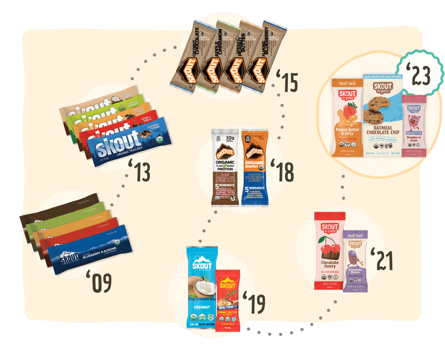 We like to think of Skout Organic as small, yet mighty. Our team has been crafting better snacks for more than a decade. What started in 2009 as a homemade trailbar baked for PNW excursions has become Skout Organic as you know it today.